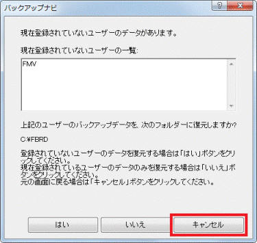 - 複数のユーザーでパソコンをお使いの場合は、バックアップしたときと同じユーザー名で復元してください。
