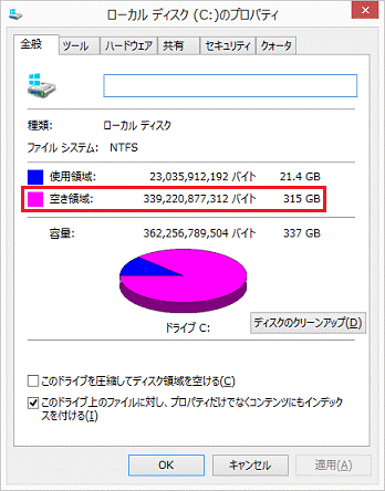[Windows 8.1/8] ハードディスクの空き容量を調べる方法を教えてください。
