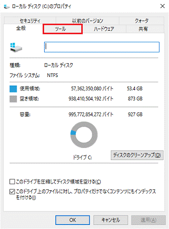 - 「ローカルディスク(C:)のプロパティ」が表示されます。