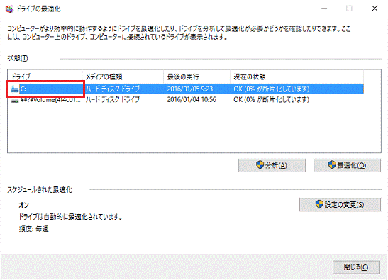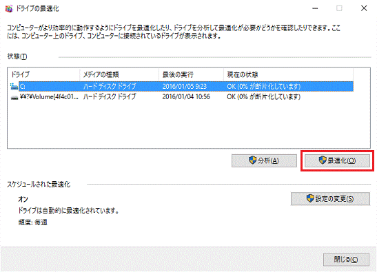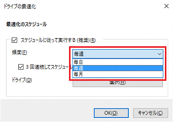 - 「定期的なスケジュールで最適化するドライブを選択してください」と表示されます。