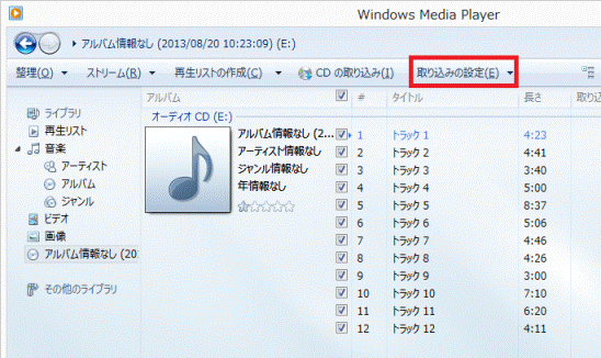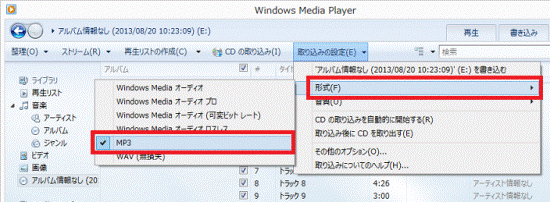 [Windows Media Player 12] 音楽CDの曲をMP3形式でパソコンに取り込む方法を教えてください。