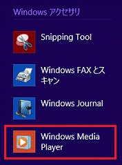 「Windows アクセサリ」の項目にある「Windows Media Player」をクリックします。