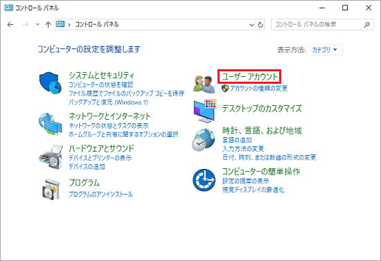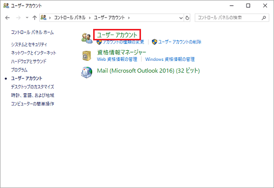 - 「×」ボタンをクリックし、「ユーザーアカウント」を閉じます。