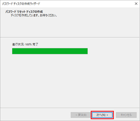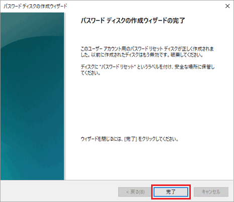 - 「パスワードディスクの作成ウィザードの完了」と表示されます。