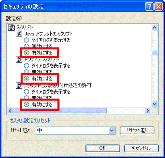 「スクリプト」欄の、次の項目で「有効にする」が選択されていることを確認します。