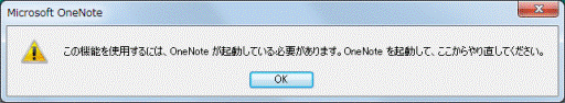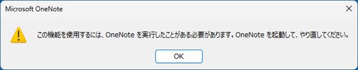 ファイルをOneNoteに出力するときに、上のメッセージが表示される場合は、OneNoteの初期設定が必要です。