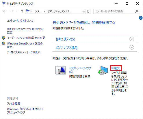 (「推奨される復元」と表示された場合) - 「推奨される復元」や「システムの復元の取り消し」などの選択項目が表示されない場合