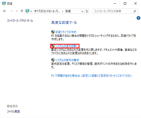 システムの復元を有効にする方法は、次のQ&Aをご覧ください。