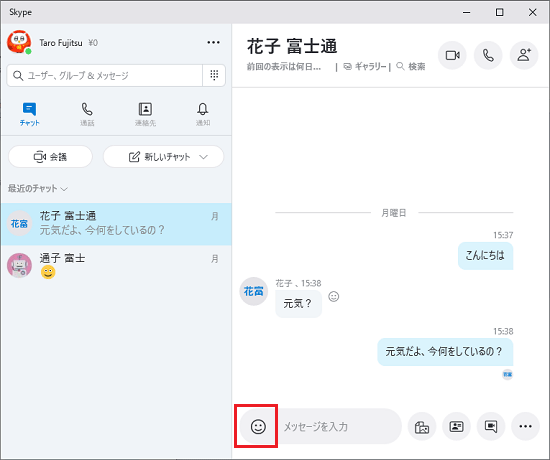 [Windows 10] Skypeでチャットをする方法を教えてください。