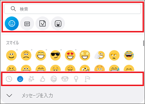 送信すると、絵文字になります。 - 絵文字の上や下に表示されているボタンで、絵文字の種類を切り替えたり、「検索」欄から絵文字を検索したりできます。