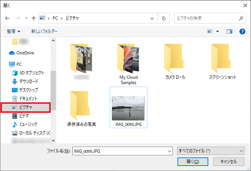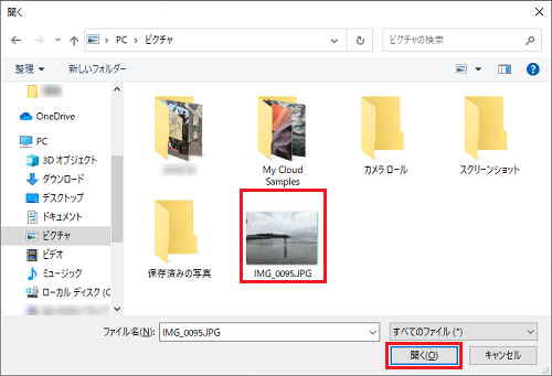 (ピクチャの場合) - 送信したいファイルをクリックして選択し、「開く」ボタンをクリックします。