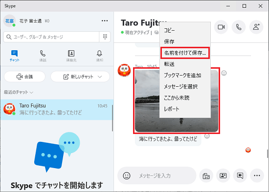 アドバイスSkypeで送受信したファイルには、利用可能な期間があります。