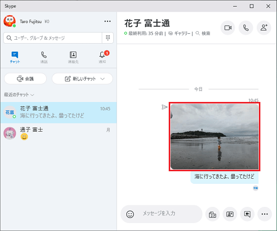 Skypeでは、画面上の操作で、会話(メッセージのやり取り)やファイルを送信することができます。