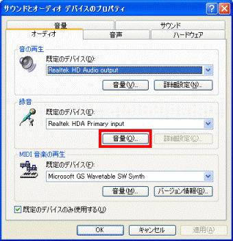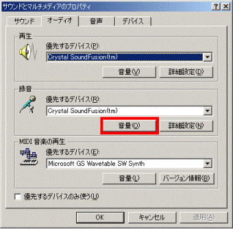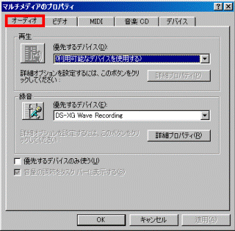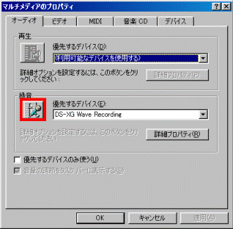 - 「サウンドとマルチメディアのプロパティ」が表示されます。