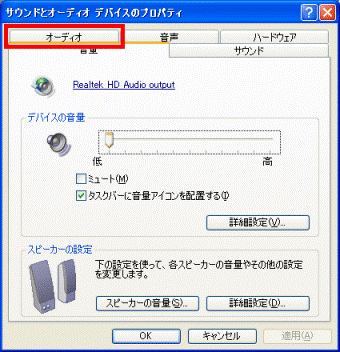 - 「サウンドとオーディオデバイスのプロパティ」が表示されます。