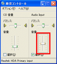 目盛りの上の方をクリックすると、録音音量が大きくなります。
