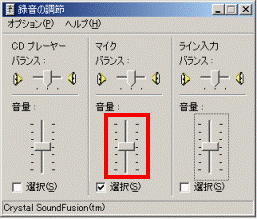 上記以外の機種をお使いの場合は、「マイク」(または「マイクロフォン」、「マイクボリューム」、「Mic」、「Microphone」)の「選択」をクリックし、チェックを付けます。 - 2006年秋冬モデル FMV-BIBLO NB70T、NB70TN、NB50T