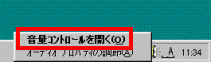 - スピーカーのアイコンを右クリックし、表示されるメニューから「音量コントロールを開く」をクリックします。