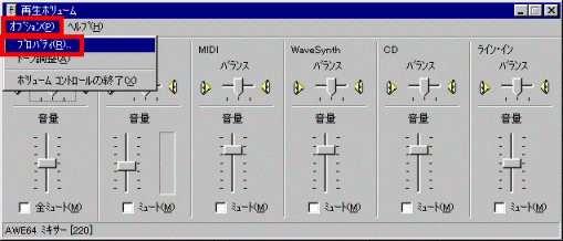「オプション」メニュー →「プロパティ」の順にクリックします。