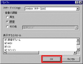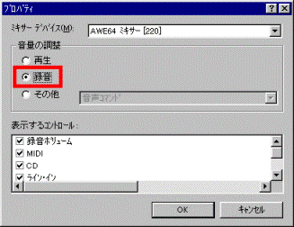 - お使いのパソコンにあわせて、録音に使用する項目にチェックを付けます。