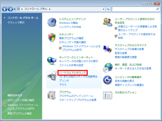 「ハードウェアとサウンド」が表示されていない場合は、次の手順に進みます。