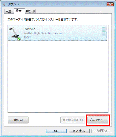 - 「OK」ボタンをクリックし、「サウンドとオーディオデバイスのプロパティ」を閉じます。