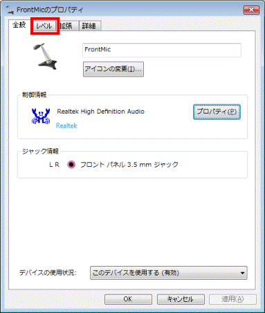 - 「FrontMic」(または「マイク」など)をクリックします。