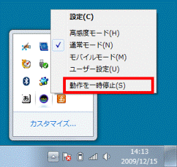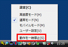 Shock Sensor Utility の動作を再開する場合は、通知領域の「Shock Sensor Utility」のアイコンを右クリックし、表示されるメニューから「動作を再開」をクリックしてください。