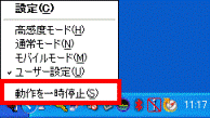 - 表示されるメニューから「動作を一時停止」をクリックします。