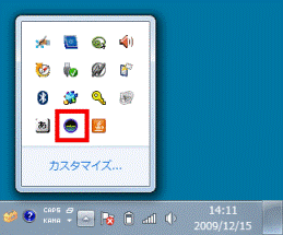 - 画面右下の通知領域にある「Shock Sensor Utility」のアイコンを右クリックします。