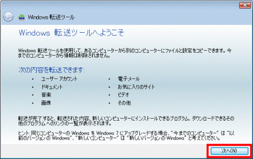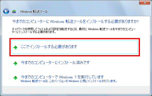 - 「今までのコンピューターにWindows 転送ツールをインストールする必要がありますか?」と「表示されます。