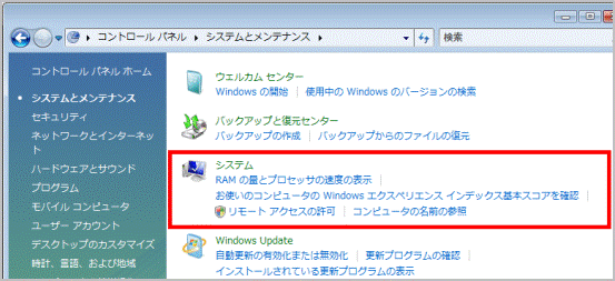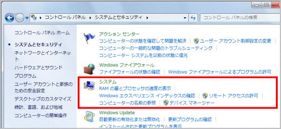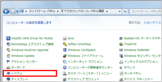 表示されない場合は「×」ボタンをクリックして「システム」を閉じます。