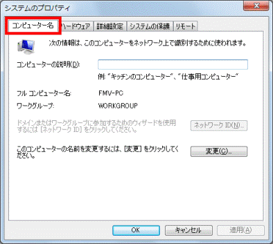 コンピューター名を確認して次の状況に応じて手順を進めます。