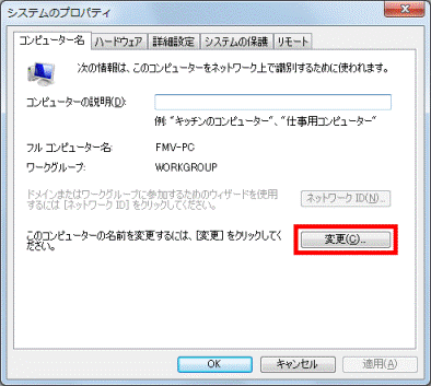 - 「コンピューター名/ドメイン名の変更」が表示されます。