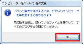 - 「これらの変更を適用するにはコンピューターを再起動する必要があります。」と表示される場合は「OK」ボタンをクリックします。
