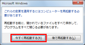- 「これらの変更を適用するにはコンピューターを再起動する必要があります。」と表示される場合は、「今すぐ再起動する」ボタンをクリックしてパソコンを再起動します。