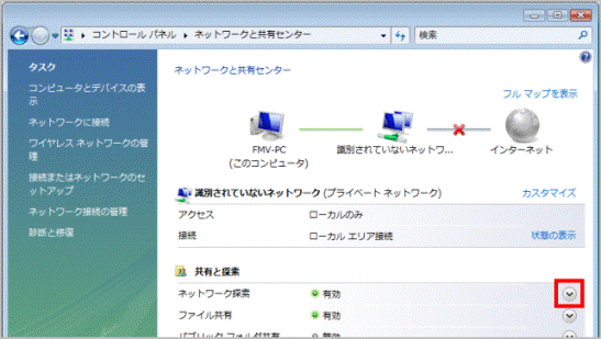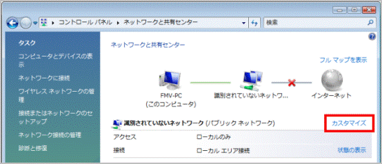 古いパソコンと新しいパソコンを有線で直接接続している場合はアイコン名に「識別されていないネットワーク」と表示されます。
