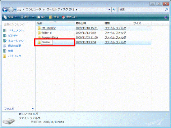 この手順では、共有フォルダーを古いパソコンのDドライブに作成します。