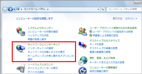 - 「スタート」ボタン→「コントロールパネル」の順にクリックします。