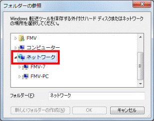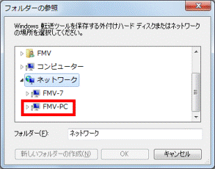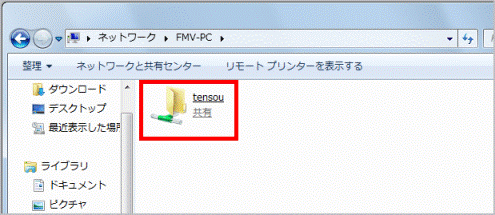 - 古いパソコンで共有設定しているフォルダーが表示されます。