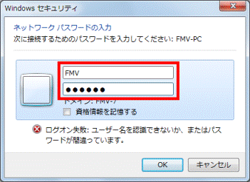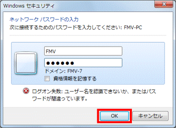 ログオンパスワードを設定していない場合は、ユーザー名だけ入力して「OK」ボタンをクリックします。