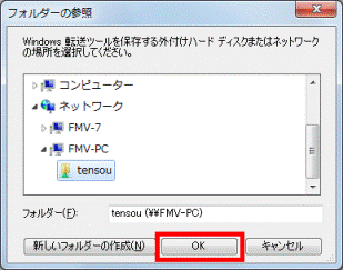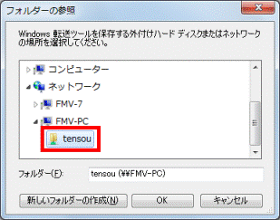 Windows 転送ツールを保存するために作成したフォルダーをクリックします。