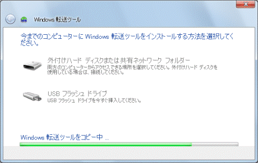 Windows 転送ツールのコピーが終了するまでしばらく待ちます。