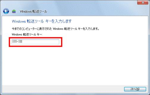 Windows 転送ツールキーは新しいパソコンで入力する必要があります。