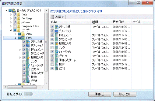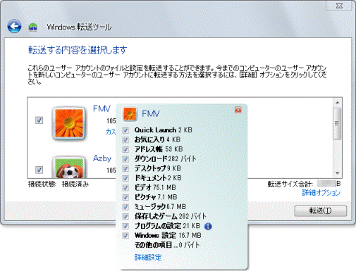 表示された選択項目の下部にある「詳細設定」をクリックすると、「設定内容の変更」が表示され、移行するデータを細かく選ぶことができます。