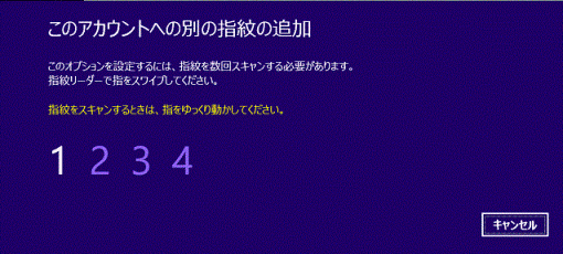 表示されるメッセージの例- 指紋をスキャンするときは、指をゆっくり動かしてください。