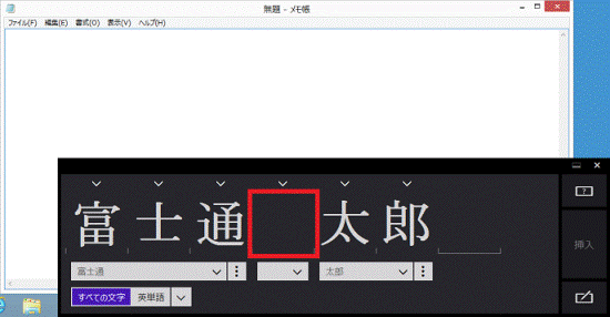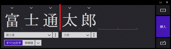 スペースを入力するには、入力欄で1文字分の間隔を空けて文字を入力します。入力欄で1文字分の間隔を空けられない場合は、文字と文字の間に縦線を引きます。