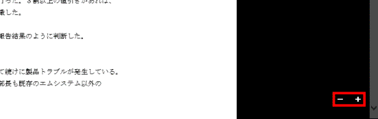 マウス操作の場合は画面右下に表示される「+」「−」をクリック、タッチ操作の場合は2本指で拡大またはピンチすると、ページを拡大・縮小できます。