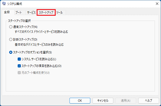 システム構成を起動して、常駐アプリの動作をすべて無効にすることで、常駐アプリが原因で問題が発生しているかどうかを確認できます。