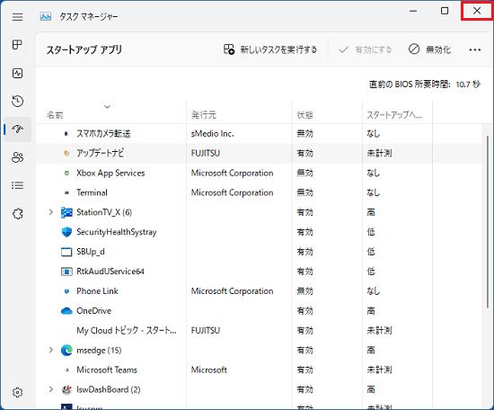 - 「×」ボタンをクリックし、タスクマネージャーを終了します。